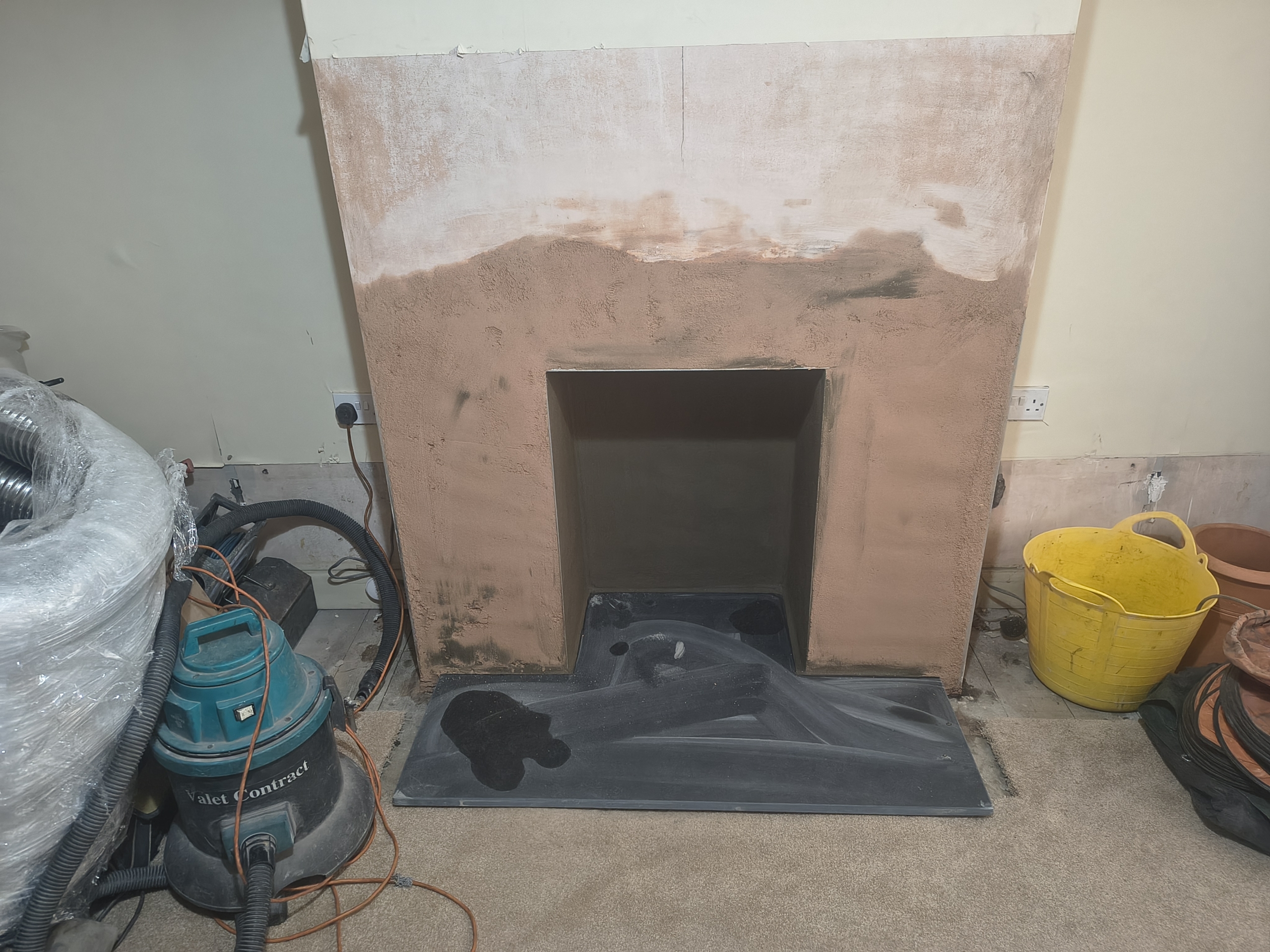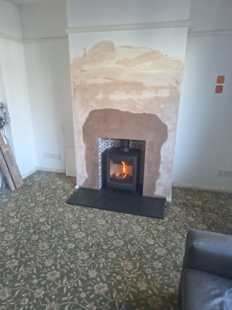 This fireplace had been rather chopped around, the This fireplace had been rather chopped around, the edges of the bricks had been cut at an angle. We rebuilt a few bits and used a more traditional soft edge with the plastering to help it all tie in. I look forward to seeing it decorated. #woodburner #bristol #parkray