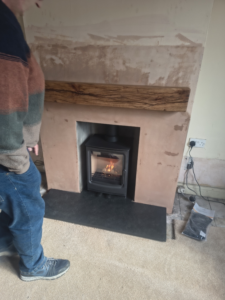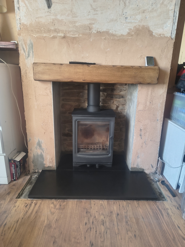 Parkray Aspect 5 installed, new slate rear hearth Parkray Aspect 5 installed, new slate rear hearth and slips, brickwork cleaned and repointed.
